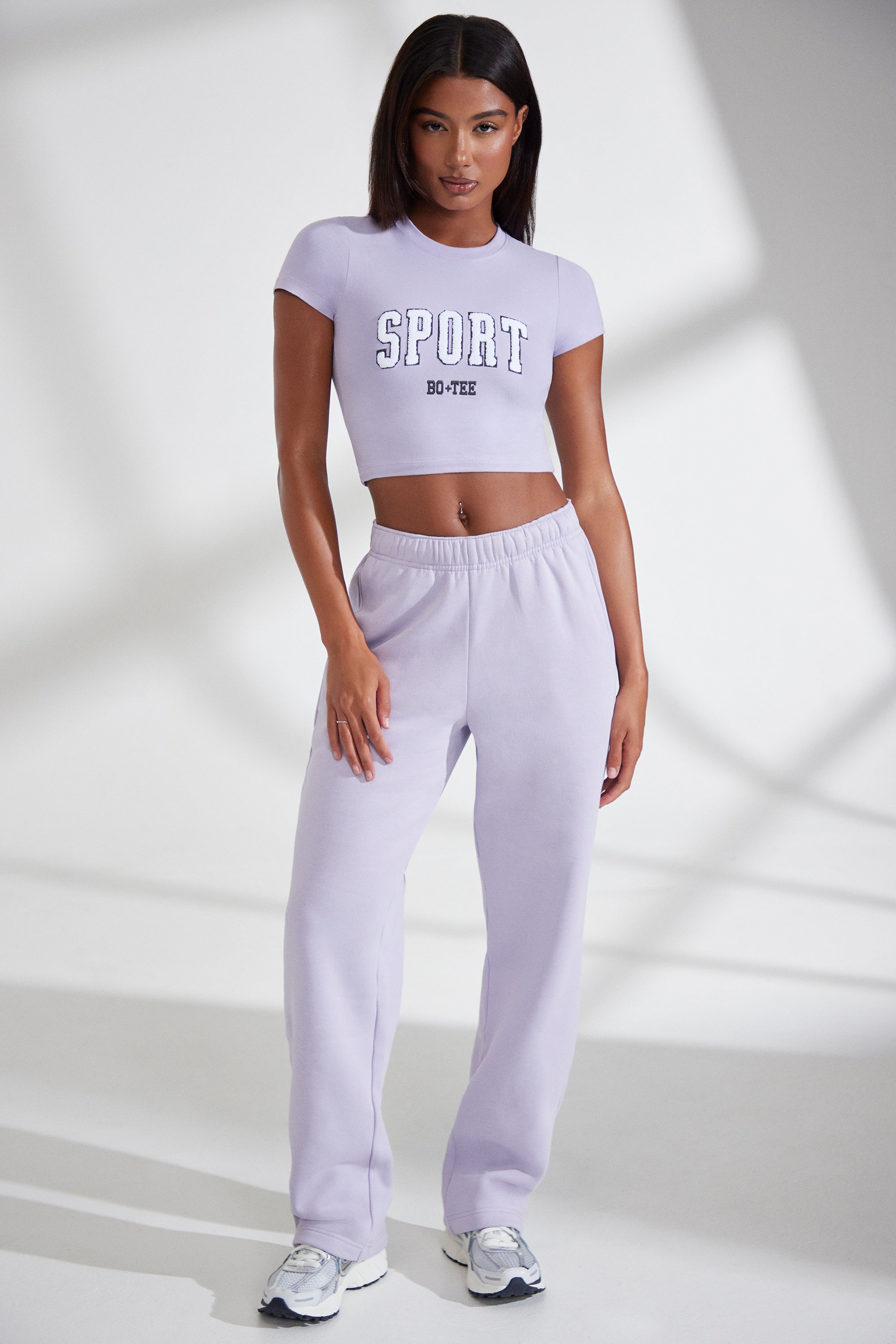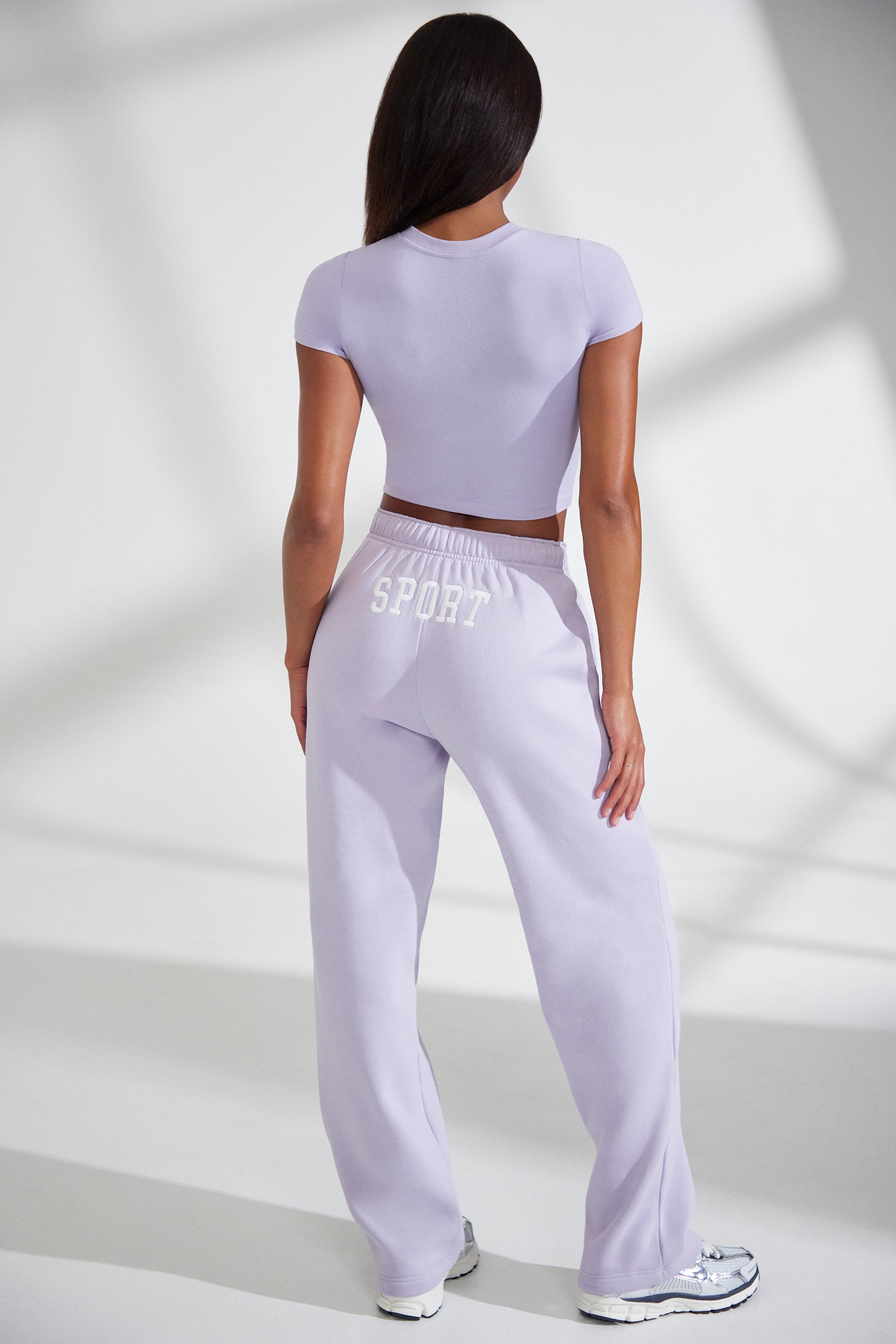 Athletics - Wide Leg Embroidered Back Joggers in Lavender